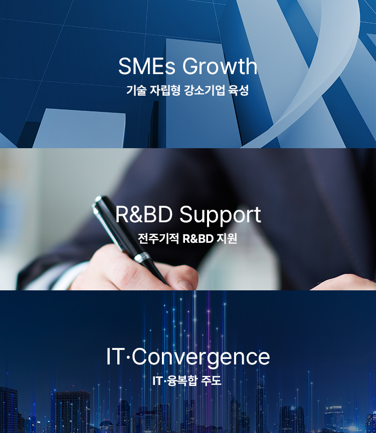 (주)가람비즈는 ‘전주기적 R&BD 지원’, ‘IT·융복합 주도’, ‘기술 자립형 강소기업 육성’ 3가지 핵심 요소를 가지고 있어 심플하게 디자인에 녹여내기 위해 노력했습니다.