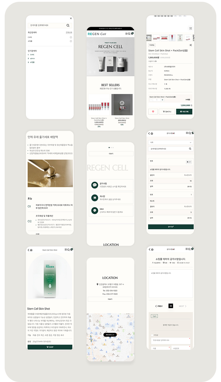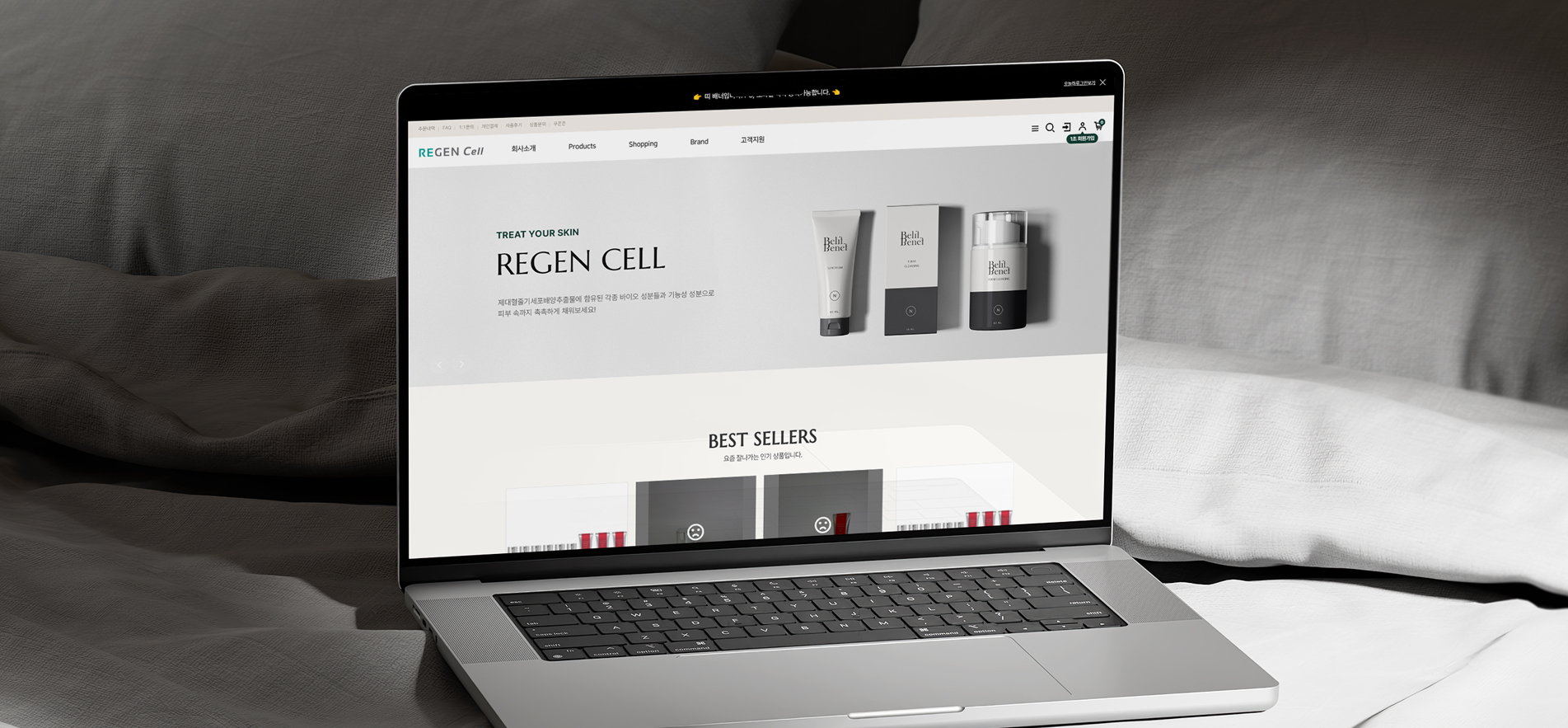 줄기세포 원료 기반 화장품 전문 기업인 리젠셀의 브랜드 아이덴티티를 명확히 전달하고, 동시에 제품 정보 제공과 간편한 구매 경험을 지원하는 것을 목표로 합니다. 이를 통해 방문자는 기업과 제품의 가치를 직관적으로 이해하고, 신뢰성 있는 쇼핑 환경에서 만족스러운 경험을 얻을 수 있도록 합니다.