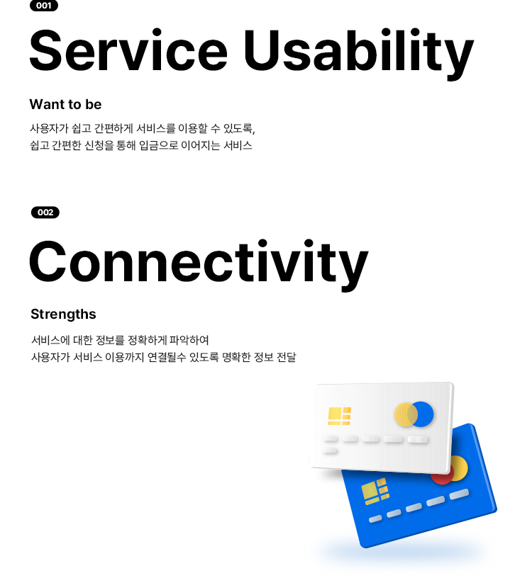 UX 면에서는 일관성, 쉽고 간편함 / UI 면에서는 정확한 정보전달에 집중하여 전략을 세웠습니다.