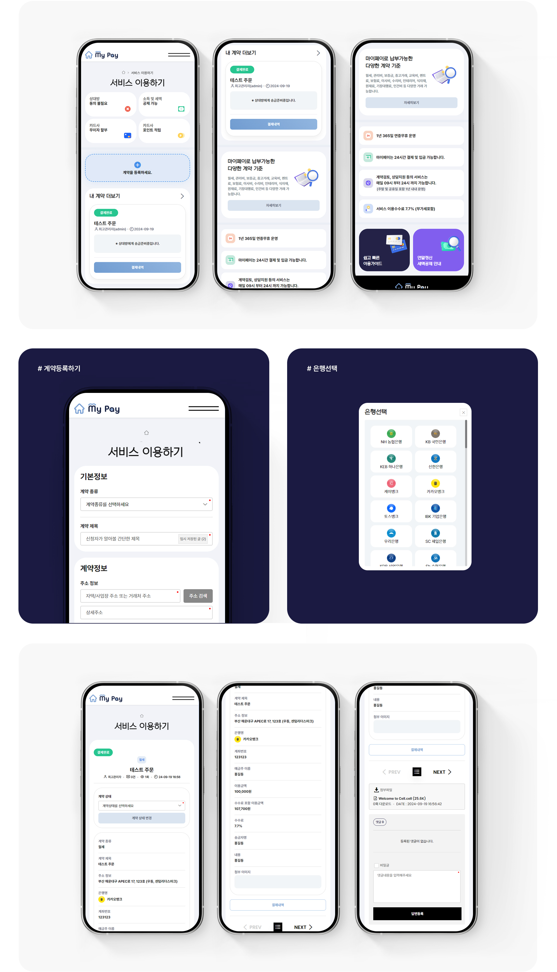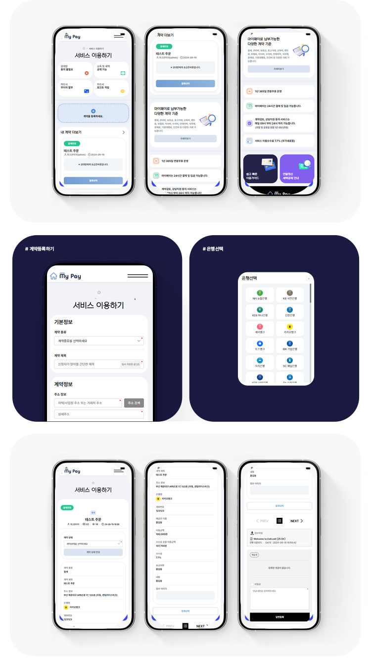 계약등록부터 입금까지 다양한 사용자들에게 손쉬운 사용성을 강조하여 결제 서비스 기회를 제공하기 위해 고민하였습니다.